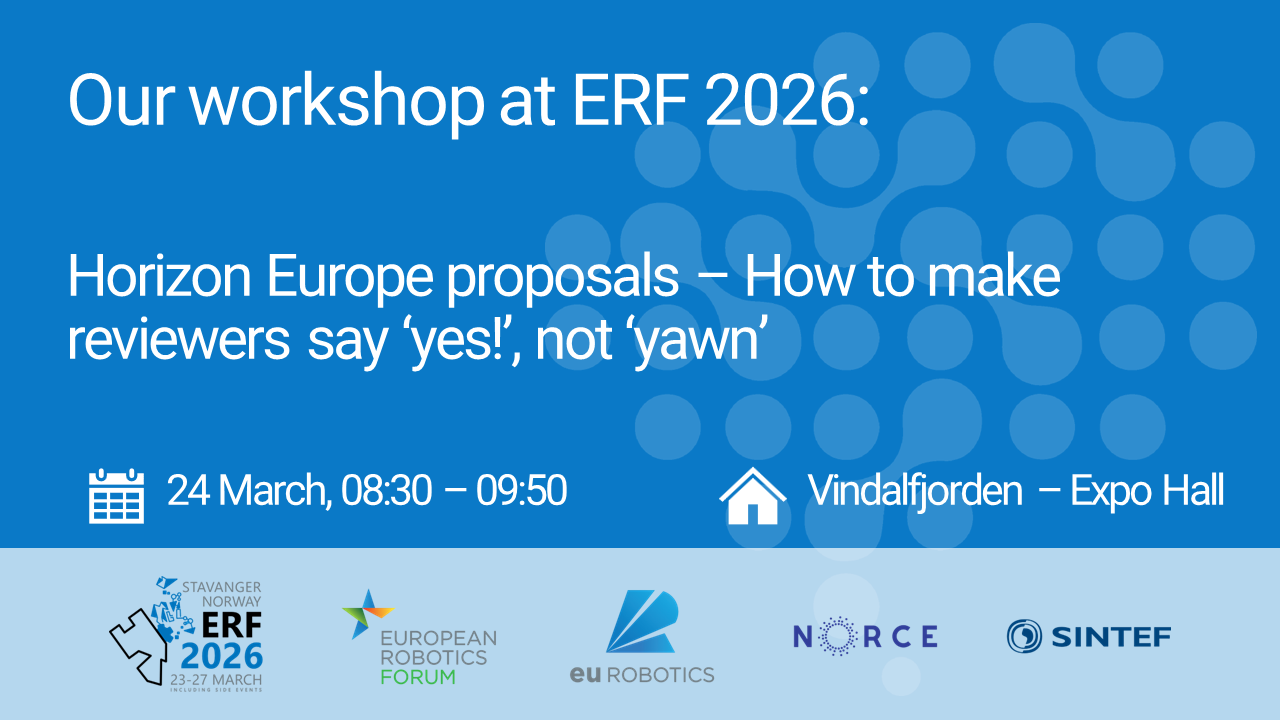After a very successful ERF 2025 in Stuttgart (DE) with 1,500 participants and Ideal-ist and NCP4Industry pooling resources to offer project idea checks onsite, ERF 2026 will take place in Stavanger (NO) from 23 March to 27 March. Ideal-ist will be onsite again, this time contributing a workshop to the programme called “Horizon Europe proposals ‐ How to make reviewers say ‘yes!’, not ‘yawn’“, which is scheduled for 24 March, 08:30 – 09:50 local time.