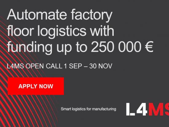 L4MS (Logistics for Manufacturing SMEs), the pan-European acceleration program aims to help small and medium-sized manufacturing companies to adapt new technologies in factory logistics. L4MS second Open Call is offering a total of €1.5million equity-free funding for creative pilot experiments in logistics.